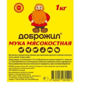 Мука мясокостная кормовая «Доброжил» 1 кг. 1/10 шт. РФ