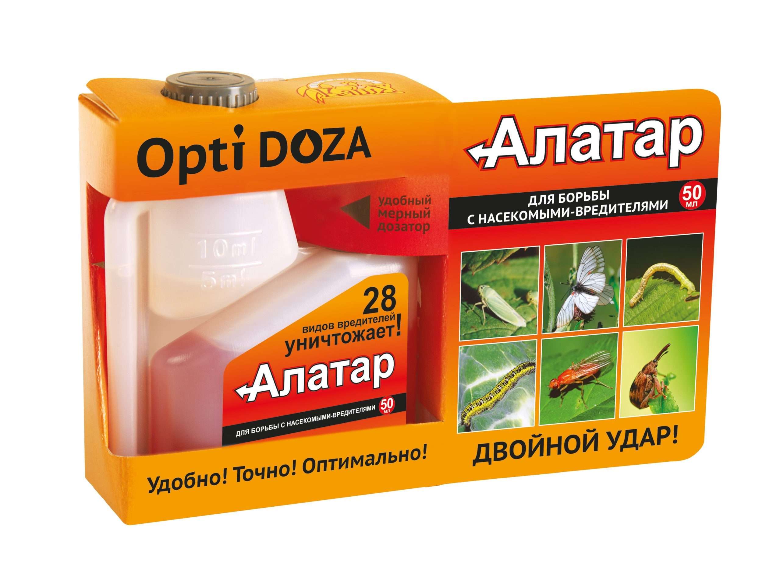 «Алатар» уничтожает 29 видов садовых и огородных вредителей! «Алатар» эффективен против плодожорок, белянок, совок, листоверток, тлей, медяницы, белокрылок, долгоносиков, листоблошек, луковой и морковной мухи, яблонной и других молей и других насекомых.