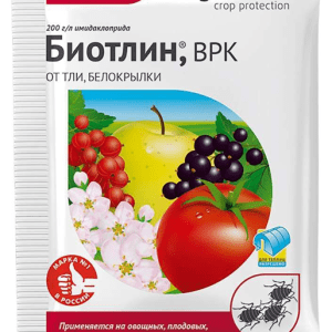 Биотлин – один из новейших препаратов против тли, а также других сосущих вредителей: белокрылки, яблонного цветоеда, цикадок, трипсов на огурцах, томатах и цветах, яблоне и смородине.