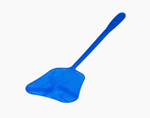 Пластиковая мухобойка классической формы с длинной ручкой.
