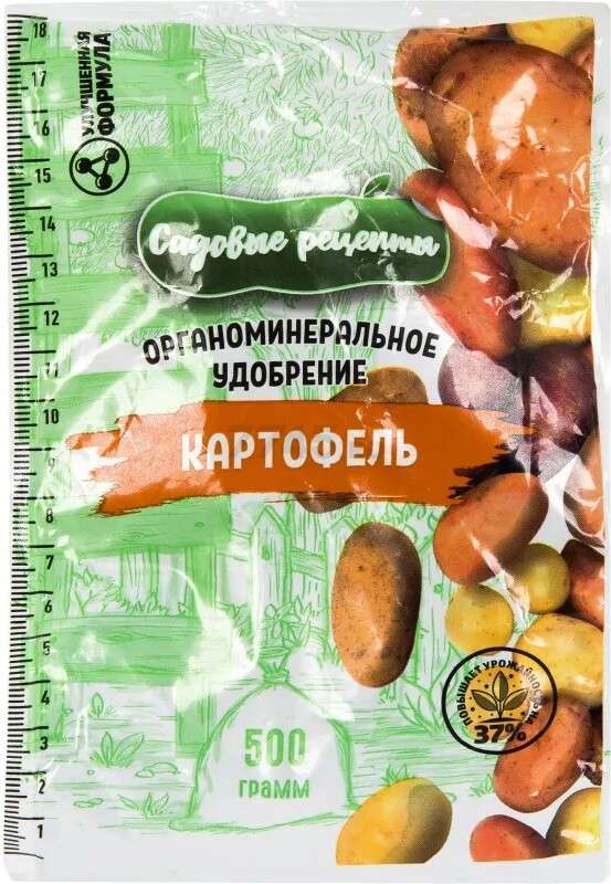 Удобрение «Садовые рецепты» для картофеля используется для повышения плодородия почвы перед посадкой и как основная подкормка в фазу активного роста клубненосных растений. Реализуется в мягких пакетах по 500 г.