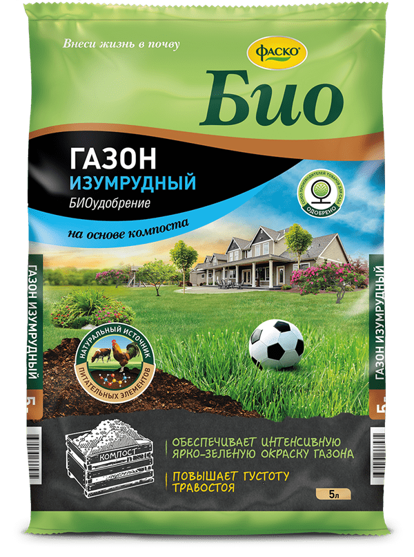 Натуральное органоминеральное удобрение, имеет в своей основе компост с добавлением дополнительных элементов питания. Использование удобрения позволяет не только обеспечить интенсивную окраску вашего газона и повысить густоту травостоя, но и улучшить структуру почвы.