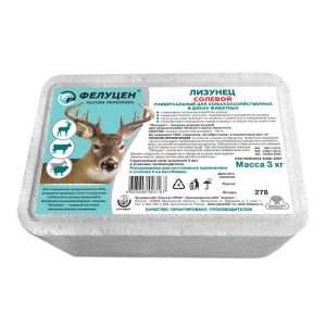 Фелуцен — лизунец универсальный (с МЭЛ) удобен в применении как на семейных фермах,так и на промышленных комплексах. Небольшая суточная потребность и невысокая стоимость лизунца удовлетворит спрос любого специалиста по кормлению. Применяя мультиминеральный комплекс «Фелуцен» зооветспециалисты хозяйства будут уверены в гарантии обеспечения всего поголовья животных сбалансированным продуктом первой необходимости в применяемых рационах.