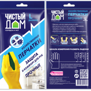 Чистый Дом - Перчатки хозяйственные (L) 1/12 шт. (ТэхноЭкспорт) РФ