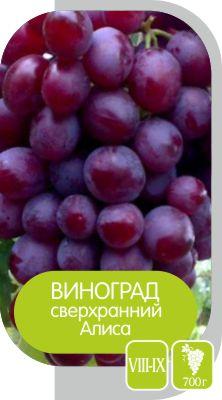 НОВИНКА!!!!! Столовая форма винограда сверхраннего срока созревания (95 — 100 дней). Кусты большой силы роста. Вызревание побегов хорошее. Грозди конические, очень крупные 700-1300 гр. и более, средней плотности. Ягоды ровные, овальные или яйцевидной формы, темно-бордовые, очень крупные 15-18 гр. и более, размером 35х30 мм, очень красивые. Мякоть ягод плотная, хрустящая, приятного сортового вкуса, с высоким сахаро-накоплением. Морозостойкость высокая.