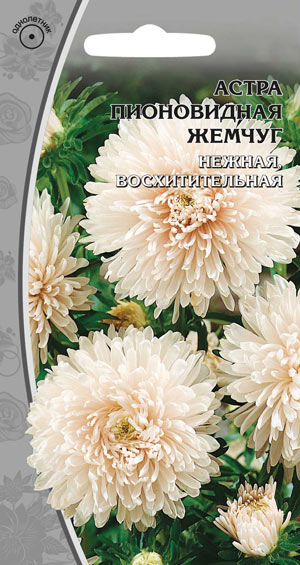 Callistephus chinensis L..Привлекательный обильно цветущий куст широкоовальной формы с многочисленными соцветиями высотой до 55 см и диаметром 35–40 см. Соцветия махровые, полусферические или шаровидные, белые, к центру розовато-кремовые, диаметром 8–10 см, до 12 штук на растении. Язычковые цветки прижаты друг к другу и загнуты в середину. Растение предпочитает открытые солнечные места. Цветет обильно с июля по октябрь. Отличаются великолепными срезочными свойствами, до двух недель стоят в воде, сохраняя декоративность. Прекрасно подойдут для оформления цветников и рабаток..Посев на рассаду в марте — апреле на глубину 0,5 см. Всходы появляются на 7–14 день. В грунт высаживают во второй половине мая, расстояние между растениями 20–30 см. Дальнейший уход заключается в регулярных поливах, осторожном рыхлении (корни располагаются поверхностно) и подкормках.