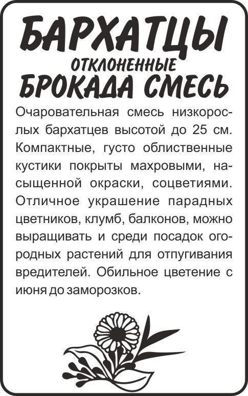 Главная страница » Каталог » Цветы Бархатцы Брокада смесь отклоненные/Сем Алт/бп 0,3 гр.
