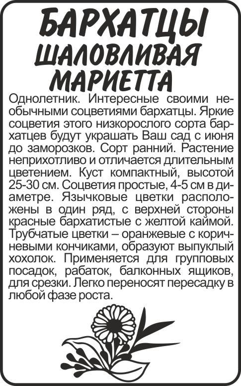 Цветы Бархатцы Шаловливая Мариетта/Сем Алт/бп 0,3 гр.