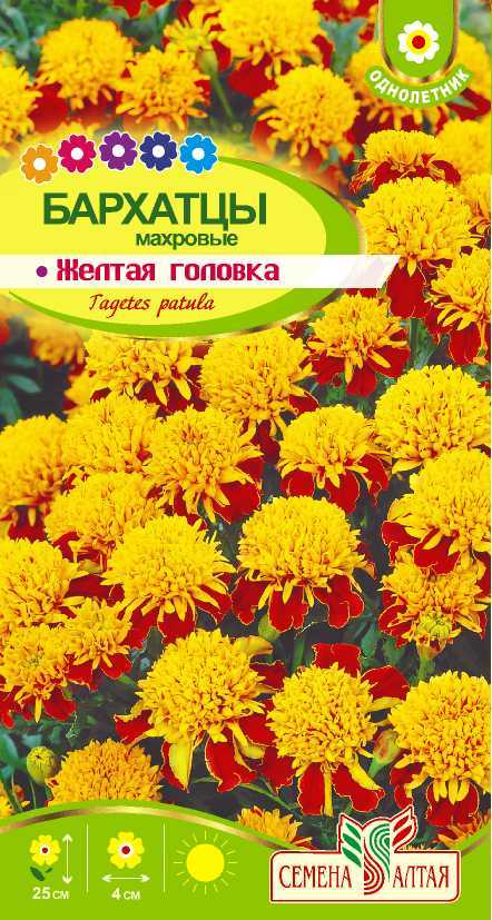 Цветы Бархатцы Желтая Головка махровые/Сем Алт/цп 0,3 гр.