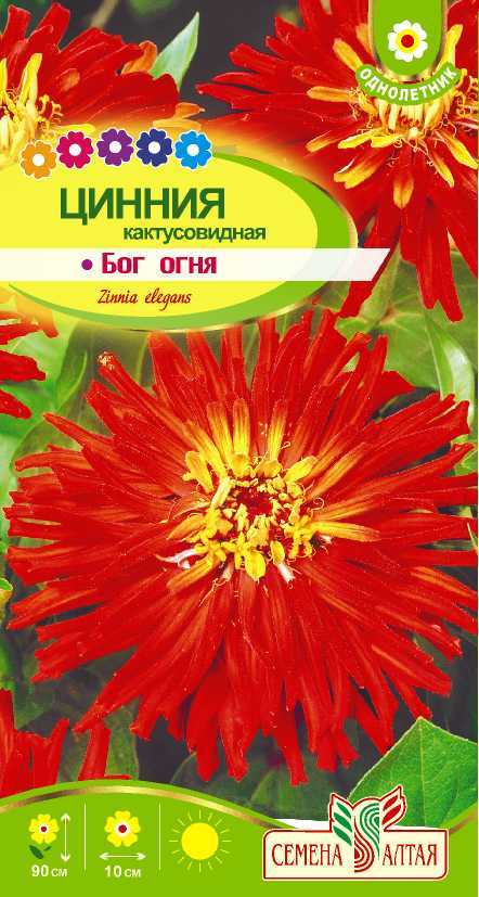 Цветы Цинния Бог Огня кактусовидная/Сем Алт/цп 0,2 гр.