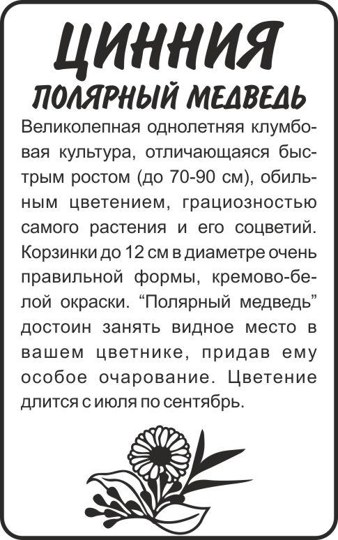Главная страница » Каталог » Цветы Цинния Полярный Медведь/Сем Алт/бп 0,3 гр.