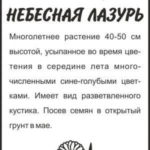 Нарядный, эффектно цветущий многолетник. Образует несколько стеблей до 100 см высотой, в нижней части украшено характерными пальчатыми листьями на длинных черешках, сверху несет длинные плотные многоцветковые кисти из сине-белых цветков. Люпин станет самым ярким украшением июньского цветника. Растение предпочитает солнечные участки, хорошо растёт на обычной дренированной почве. Семена высевают в апреле-мае на постоянное место. Прореживают на расстоянии 40-50 см. Цветение в первый год нежелательно.