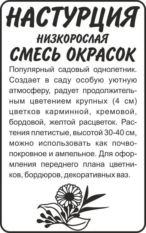 Главная страница » Каталог » Цветы Настурция Смесь Окрасок низкоросл./Сем Алт/бп 1 гр.