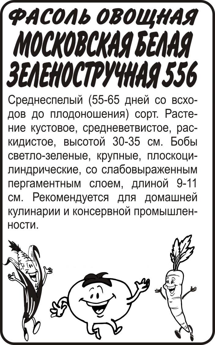 Среднеспелый (55-65 дней до первого сбора лопатки). Бобы крупные, со слабо выраженным пергаментным слоем, светло-зеленые. длиной 9-11 см. Рекомендуется для домашней кулинарии и консервной промышленности.
