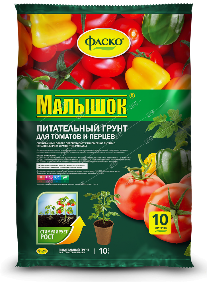 Грунт для томатов и перцев Фаско Малышок 10 л. 1/5 шт. (Фаско) РФ