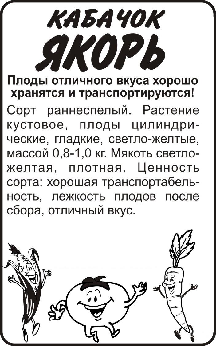 Сорт раннеспелый. Растение кустовое, плоды цилиндрические, гладкие, светло-желтые, массой 0,8-1 кг. Мякоть светло-желтая, плотная. Ценность сорта: хорошая транспортабельность, лежкость плодов после сбора, отличный вкус. Семена сеют непосредственно в грунт, когда минует угроза заморозков. Схема посадки 150х60 см, глубина заделки семян 3-5 см. Для раннего получения продукции семена кабачков сеют на рассаду после 30 апреля. При раннем посеве или посадке рассады в открытый грунт необходимо временное укрытие пленкой. Для получения наиболее высокого урожая желательно регулярно про-водить рыхление почвы. Сбор урожая по мере созревания плодов.