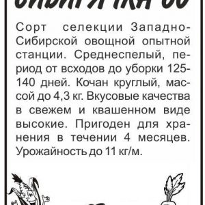 Раннеспелый сорт. Головка округлая, белая, массой 1,2 кг, очень плотная. Вкус хороший. Устойчив к черной ножке и киле. Ценность сорта: стабильность урожая, отличные вкусовые качества, высокая плотность головок, повышенное содержание сахаров. Цветная капуста — холодостойкое растение, требовательное к влаге и плодородию почвы. Выращивают прямым посевом в открытый грунт или через рассаду. Для получения рассады семена начинают высевать в первой декаде марта, а рассаду в открытый грунт с 25 мая по 10 июня. Схема посадки 50х50 см. Капуста отзывчива на азотно-калийные удобрения и на подкормки микроэлементами (молибденом и бором), предотвращающими появление деформации листьев и загнивание головок. После появления головок их притеняют, надламывая над ними 1-2 листа. Сбор урожая проводят по мере формирования головок.