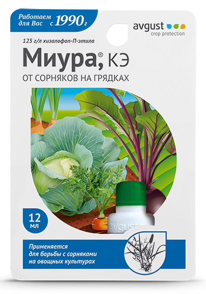 Миура 12 мл. — Современный препарат для борьбы с сорняками на овощных культурах. Селективный послевсходовый гербицид для борьбы с однолетними и многолетними злаковыми сорняками на посевах технических, овощных, зернобобовых и других культур Граминицид бойцовой породы.- Действует избирательно, не повреждая культурные растения.