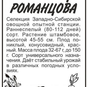Среднеранний сорт. Растение полуштамбовое. Плод темно-зеленый, в биологической спелости красный, массой 12-18 г. Широкое применение в кулинарии. Ценность сорта: высокая пластичность, урожайность, острый вкус, использование для настойки «Перцовка» в домашних условиях. Можно выращивать после моркови, капусты, свеклы, бобовых (кроме фасоли) и тыквенных культур. Перец нельзя размещать рядом с огурцом. Выращивается рассадным способом. Для полу-чения рассады семена высевают в феврале в посевные ящики с почвенной смесью. Ящики, накрытые пленкой (стеклом), помещают в теплое место. Оптимальная температура для прорастания семян 23-25°С. В открытый грунт высаживают в начале июня.
