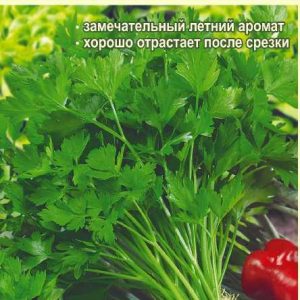 Среднеспелый (80 дней от всходов до технической спелости) сорт. Розетка сильно развита, число листьев от 40 до 100. Листья темно-зеленые, сильнорассеченные, хорошо отрастают после срезки. Корневища перезимовывают в почве и быстро дают свежую зелень ранней весной. Благодаря нежному и приятному вкусу, наряду с высоким содержанием витаминов и минеральных солей, этот уникальный сорт широко используется как пряно-вкусовая культура в свежем и сушеном виде, в кулинарии и при консервировании. Нетребовательная к теплу. Всходы переносят заморозки до -7°С, а корни сохраняются зимой на грядке. Хорошо растет на рыхлых, богатых перегноем почвах. Тяжелые глинистые почвы для нее не пригодны. Требовательна к влаге. Лучшие предшественники — огурец, лук, картофель. Учитывая очень медленное прорастание семян, к посеву нужно приступать как можно раньше, обычно в апреле, возможен посев под зиму. При подкормке следует вносить минимальные дозы азотных удобрений, чтобы не накапливались нитраты. Сбор урожая проводят в октябре или в те