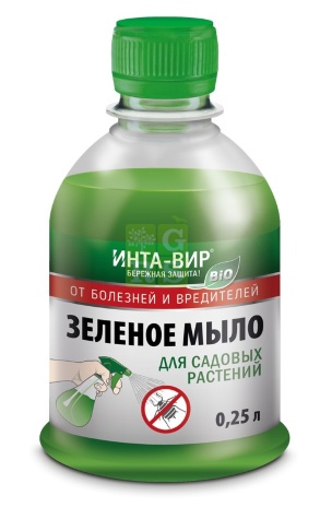 - химическими средствами защиты: опрыскивание раствором зеленого мыла с добавлением химических средств защиты от болезней (парши, мучнистой росы, фитофтороза и др.) с фунгицидами, от вредителей (тли, паутинного клеща, колорадского жука, плодожерки, цветоеда и др.) с инсектицидами. Добавить 100 мл зеленого мыла в 10 л готового раствора фунгицида, инсектицида.